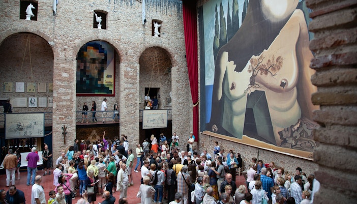 You step into the heart of the Dalí Theatre-Museum under a glass dome that feels more sci-fi than classical. This central patio sets the tone for the Dalí Theatre and museum—bold, theatrical, and intentionally disorienting, exactly how Dalí wanted visitors to begin their journey.